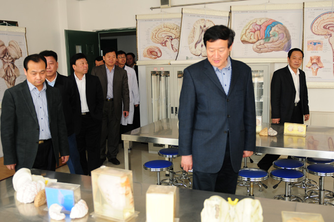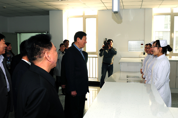 4月9日,市委书记潘利国来我院视察工作,在我院领导班子陪同下参观了医学基础实训中心和护理实训中心,参观过程中潘书记对我院专业设置,毕业生就业率以及校园建设等情况进行了了解,并与我院护理系学生进行了亲切交谈,了解了她们在校的学习和生活情况,同时鼓励她们努力学习、强化技能,将来更好地为地方医疗事业服务。市委常委、市委秘书长刘非及副市长胡俊波、卫生局局长白光达一同视察。