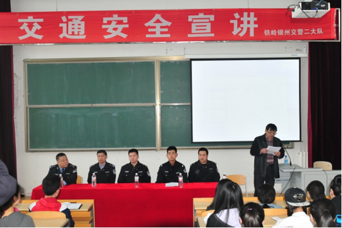为深入推进校园交通安全教育,增强全院学生交通安全意识和自我防护能力,4月6日下午,我院在第二阶梯教室举行了以“关爱生命,安全出行”为主题的交通安全校园宣传教育活动。铁岭市交警支队银州区二大队10余名交警以及我院各系学生辅导员和学生代表146人参加会议,会议由学生处处长乔植宇主持。