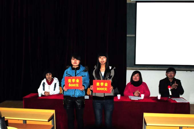 2012年1月3日下午,我院学生管理部门在第二阶梯教室联合举行学生表彰大会。会议由副院长刘岩峰主持,党委副书记杨丽清以及学生处、团委、公寓等学生管理部门领导、教师和获奖同学出席了会议。会上,团委书记王海艳、学生处处长乔植宇分别宣读了关于“先进团支部”、 “优秀团干部”、“优秀团员”与“三好学生”、“优秀学生干部”、“优秀舍务干部”以及“国家奖学金”、“省政府奖学金”、“国家励志奖学金”的表彰决定,并进行现场表奖。会议最后,党委副书记杨丽清代表院党委对获奖学生给予高度赞扬,并对从事学生管理工作的各位教师与学生干部提出了殷切希望与祝福。