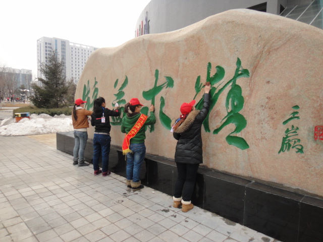 3月5日,青年志愿者们在院团委组织带领下,开展了清扫校园、美化校园的活动,同学们仔细擦拭着每一个路灯、座椅,用自己的双手悉心装扮着我们的校园,并利用电子屏幕宣传雷锋、郭明义精神,使同学们更好地感悟奉献精神。