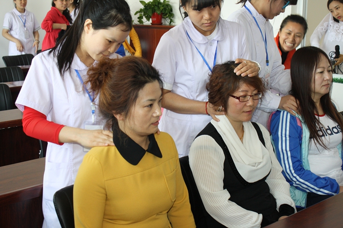 我院宣传片《白衣天使的摇篮》拉开了活动的序幕,通过宣传片向社区居民介绍了我院的概况、人才培养、校园建设等情况,使社区居民对我校办学情况有了进一步了解。随后,检验技术系同学杨雨彤讲解了《弟子规》的深刻的内涵,诠释了一个优秀的人在社会中应该具备的品质、德行,无论对同学或家长都有深刻的教育意义;康复系老师陈丽超向现场居民做了关于中老年人的面部保健的讲座,现场居民积极参与,受益颇多;同学们表演的歌曲《烛光里的妈妈》、舞蹈《天亮了》精彩绝伦,台下掌声不绝于耳,掀起此次活动的高潮。活动的最后,康复系同学们在陈丽超老师的指导下为社区居民进行现场按摩、美容,受到了社区居民的一致认可与赞扬。