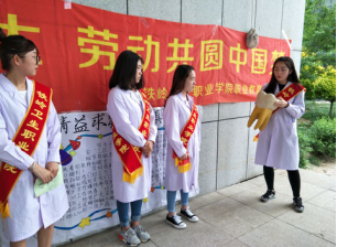 5月8日下午,护理系、药学系、医学检验系、公共基础部师生共同走进铁岭凡河新区“泛欧 红石郡”社区,开展“共筑职教梦,喜迎十九大”职业教育活动周活动。