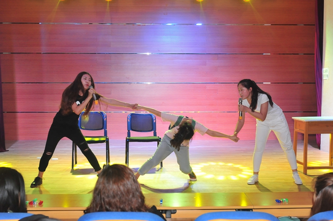 会上,我院的各学生社团都将近半年来的训练成果以歌曲、演唱、舞蹈、小品、话剧等演出的形式做了总结汇报,内容丰富多彩,极赋创新意义,展示作品都令在场观众及老师们感到耳目一新。